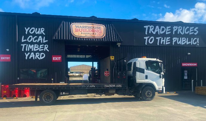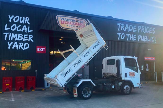 The Warehouse Building Supplies delivery trucks are tipper trucks — not a hiab. Bear this in mind as we do not hand unload timber deliveries.